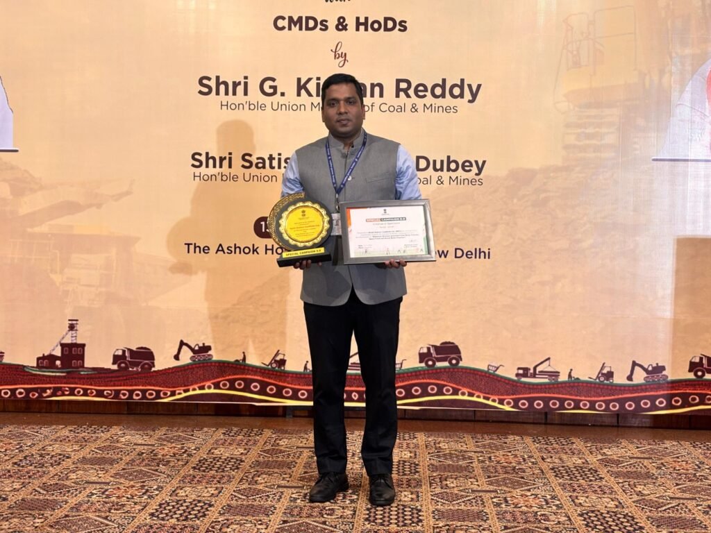 • सफाई, स्क्रैप निस्तारण एवं सोशल मीडिया में उत्कृष्ट प्रदर्शन के लिए मान. केंद्रीय कोयला एवं खान मंत्री जी किशन रेड्डी द्वारा किया गया सम्मानित।