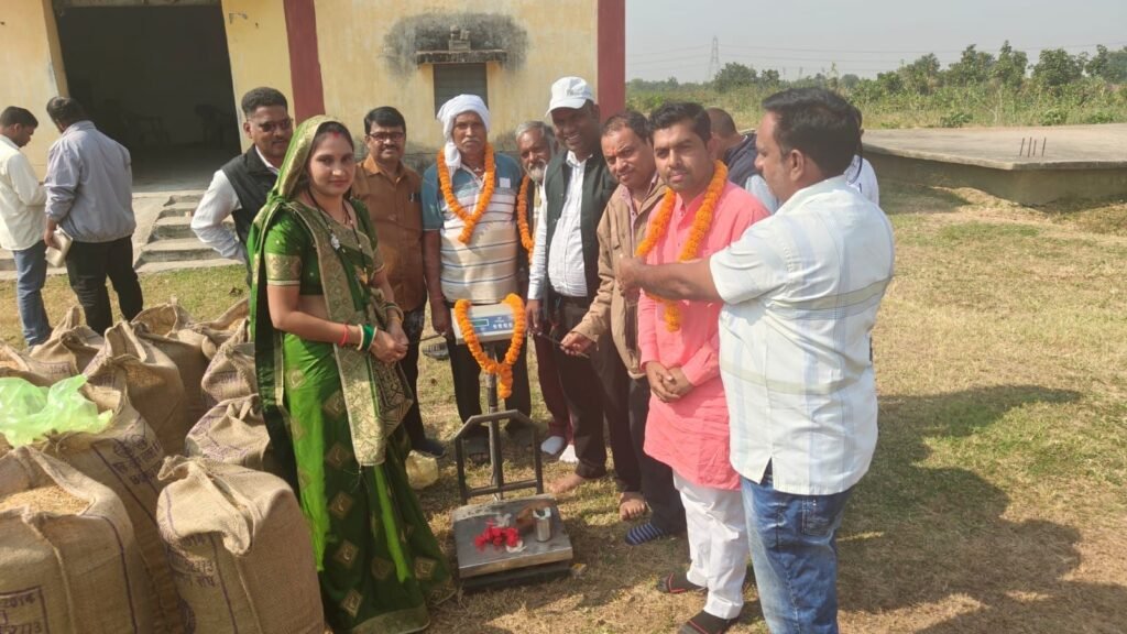 मानिकचौड़ी धान खरीदी केंद्र का शुभारंभ, सभापति सरिता नरेन्द्र नायक रहीं मुख्य अतिथि।