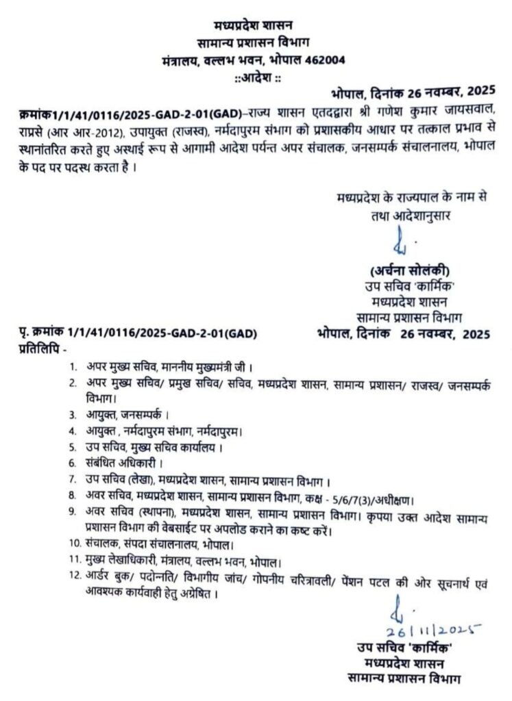 मध्य प्रदेश के जनसंपर्क विभाग में राज्य प्रशासनिक सेवा (आरएएस) के एक अधिकारी की पदस्थापना को लेकर उपजे असंतोष ने सोमवार को राज्यभर में व्यापक रूप ले लिया। विभागीय अधिकारियों और कर्मचारियों ने इस आदेश को “विभाग की गरिमा और पेशेवर संरचना के विरुद्ध” बताते हुए आज सुबह 11 बजे से अनिश्चितकालीन पेन डाउन हड़ताल की शुरुआत कर दी।