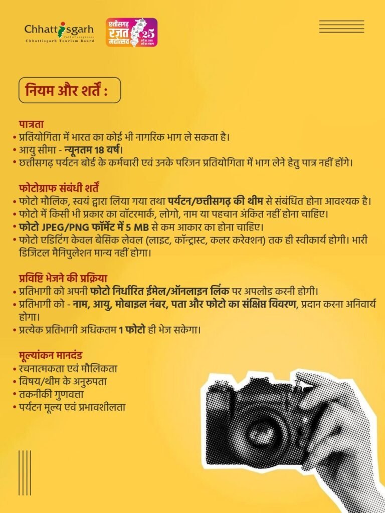 छत्तीसगढ़ पर्यटन बोर्ड द्वारा रजत जयंती वर्ष में ऑनलाइन फोटोग्राफी प्रतियोगिता