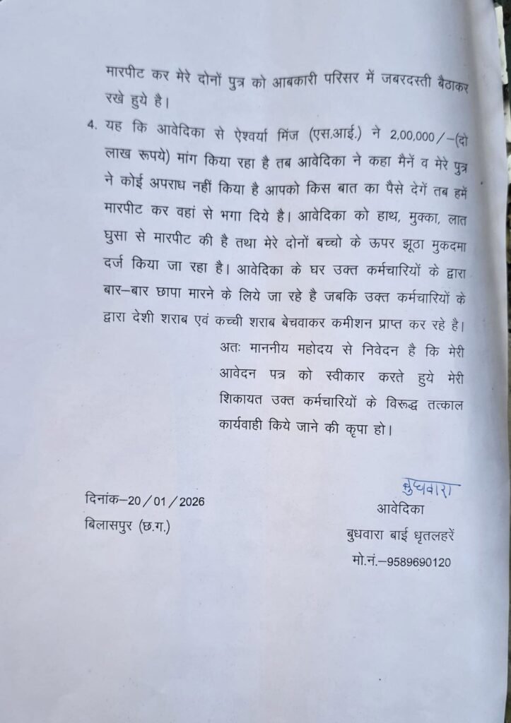 बिलासपुर : आबकारी विभाग के एसआई पर गंभीर आरोप…जबरिया कार्रवाई कर 2 लाख रुपए की मांग, पीड़ित परिवार ने लगाई न्याय की गुहार