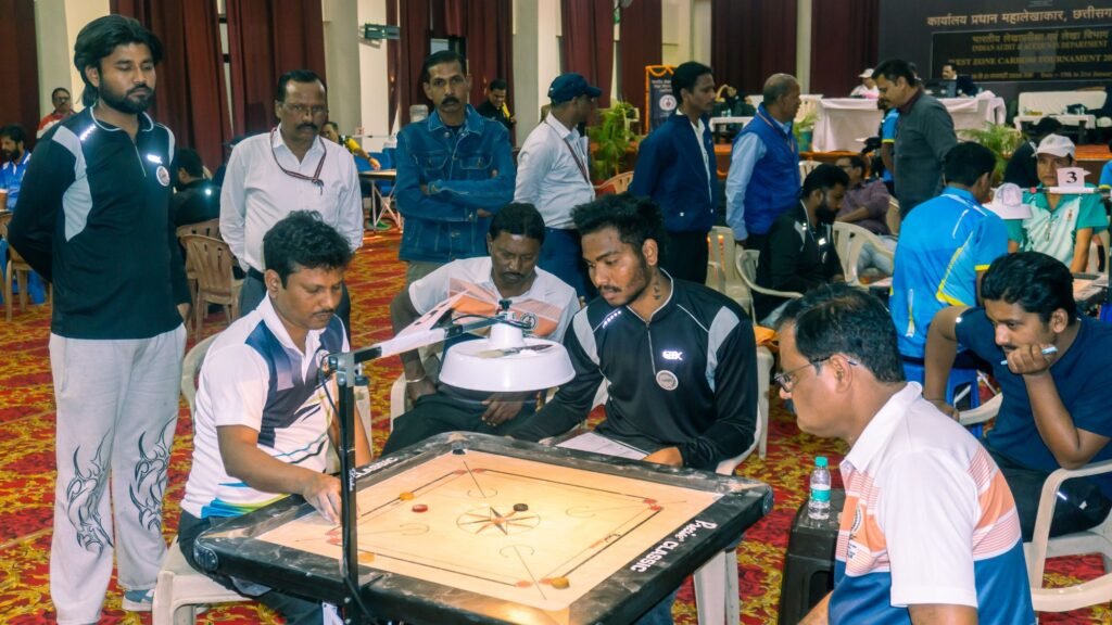 रायपुर । भारत के नियंत्रक एवं महालेखापरीक्षक कार्यालय के तत्वावधान में कार्यालय प्रधान महालेखाकार, छत्तीसगढ़, रायपुर द्वारा महालेखाकार आवासीय परिसर स्थित कम्युनिटी हॉल में आयोजित तीन दिवसीय “भारतीय लेखापरीक्षा एवं लेखा विभाग पश्चिम क्षेत्रीय कैरम प्रतियोगिता 2025–26” के दूसरे दिन टीम संवर्ग के मुकाबले खेले गए। रोमांचक फाइनल मुकाबले में कार्यालय प्रधान महालेखाकार, महाराष्ट्र, नागपुर की टीम ने शानदार प्रदर्शन करते हुए खिताब अपने नाम किया।