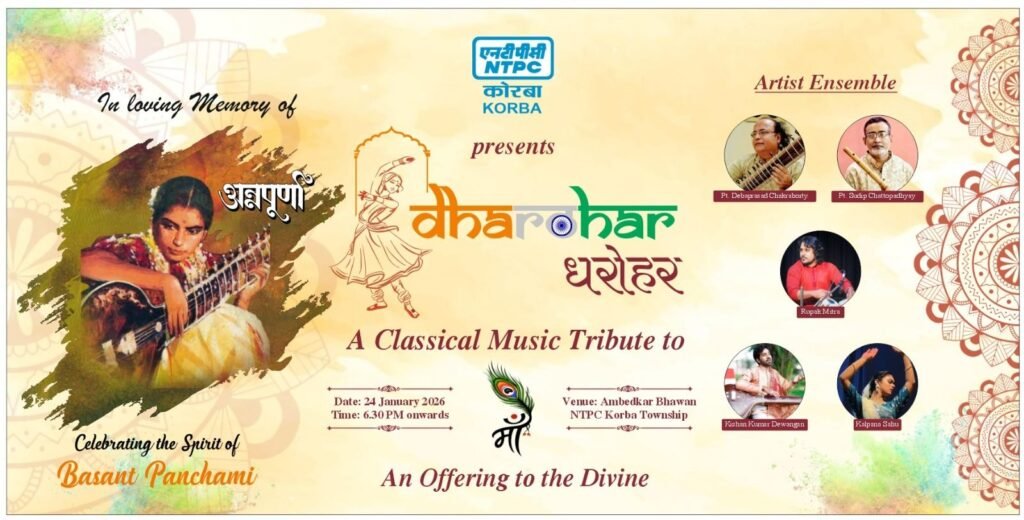 एनटीपीसी कोरबा प्रस्तुत करता है “धरोहर” – अन्नपूर्णा देवी की विरासत को समर्पित दिव्य भारतीय शास्त्रीय संगीत संध्या