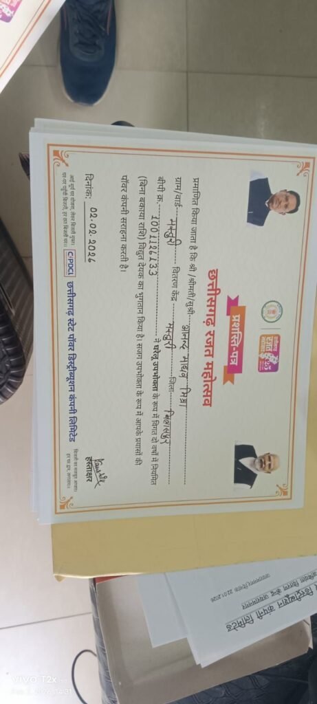 मस्तुरी । मध्यप्रदेश से छत्तीसगढ़ को अलग हुए 25 वर्ष पूर्ण होने पर मस्तुरी बिजली विभाग ने मनाया रजत जयंती के रूप इस कार्यक्रम का आयोजन किया गया था, साथ ही सकुशल बिजली बिल प्रदान करना एवं नियमित रूप से बिजली बिल को उपभोक्ताओं द्वारा कार्यालय में जमा करना यही एक सही उपभोक्ताओं की पहचान और ईमानदारी का प्रतीक है।