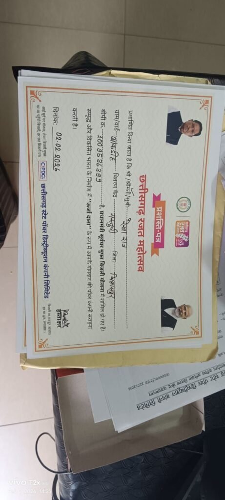 सही समय में उपभोक्ताओं द्वारा बिजली बिल को जमा करने वाले उपभोक्ताओं को इस कार्यक्रम के माध्यम से प्रशस्ति पत्र देकर सम्मानित किया गया तथा प्रधानमंत्री सूर्यघर मुफ्त बिजली योजना में शामिल होने वाले उपभोक्ताओं को भी प्रशस्ति पत्र देकर सम्मानित किया गया है, इस कार्यक्रम मे सरकार की महत्वकांक्षी योजनाओं के बारे मे ग्रामीणों को बताया गया । साथ ही बिजली विभाग के अधिकारियों द्वारा स्मार्ट मीटर को सभी लोग अपने घर पर लगाने के लिए प्रेरित किया गया
