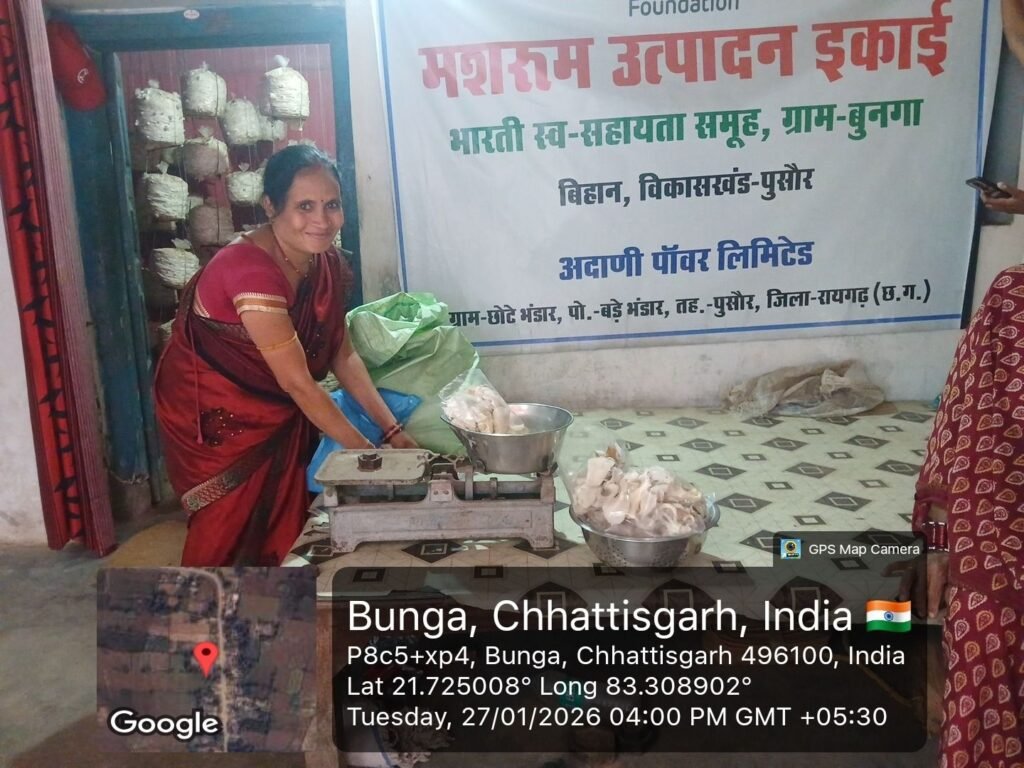 रायगढ़/बड़े भंडार । अदाणी फाउंडेशन, रायगढ़ द्वारा संचालित सतत आजीविका विकास (एसएलडी) परियोजना ग्रामीण महिलाओं के आर्थिक और सामाजिक सशक्तिकरण का मजबूत आधार बन रही है। इस परियोजना के अंतर्गत स्वयं सहायता समूहों की महिलाओं ने मशरूम उत्पादन को आय का साधन बनाते हुए अब तक ₹5,51,000 लाख से अधिक की आय अर्जित की है। यह उपलब्धि ग्रामीण महिलाओं को आत्मनिर्भर बनाने और उनके जीवन में स्थायी परिवर्तन लाने की दिशा में एक महत्वपूर्ण कदम है।