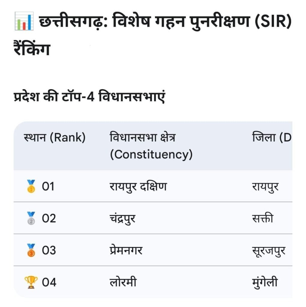एक ओर जहां तहसीलदार के खिलाफ कथित हड़ताल और दुष्प्रचार चल रहा था, वहीं दूसरी ओर प्रशासनिक मोर्चे पर लोरमी विधानसभा ने उल्लेखनीय उपलब्धि हासिल की। कलेक्टर कुंदन कुमार के नेतृत्व में जिले ने विभिन्न योजनाओं में बेहतर प्रदर्शन किया। विशेष गहन पुनरीक्षण (SIR) अभियान में लोरमी विधानसभा ने पूरे छत्तीसगढ़ की 90 विधानसभाओं में चौथा स्थान प्राप्त किया। यह उपलब्धि राजस्व अमले की हड़ताल के बावजूद हासिल की गई।
